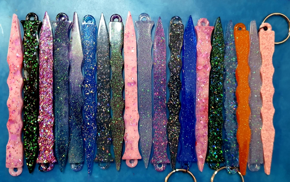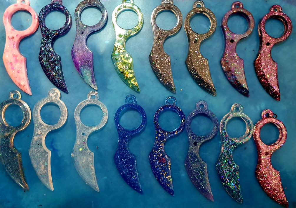 Glittershanks made of resin and glitter. You may choose a single base color and up to three glitter colors.